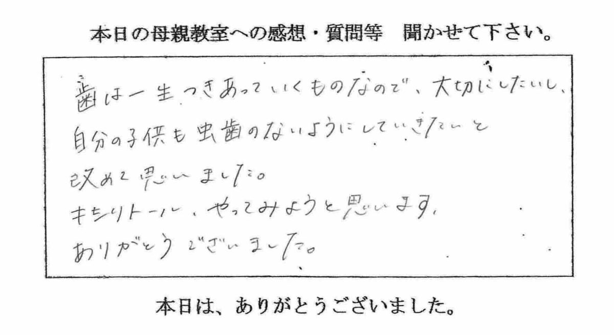 ムシ歯のない歯、きれいな歯並びを親からの生涯の 子供へのプレゼントと考えてましたので、とても満足しています。