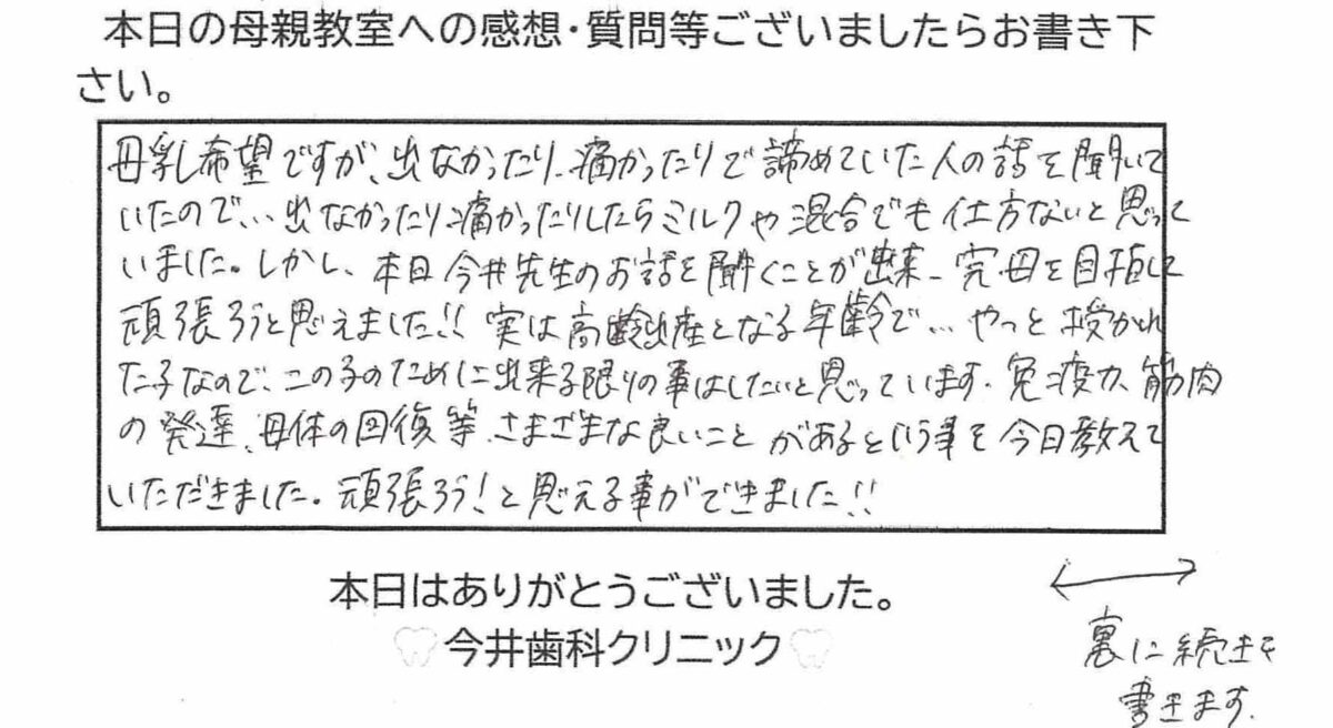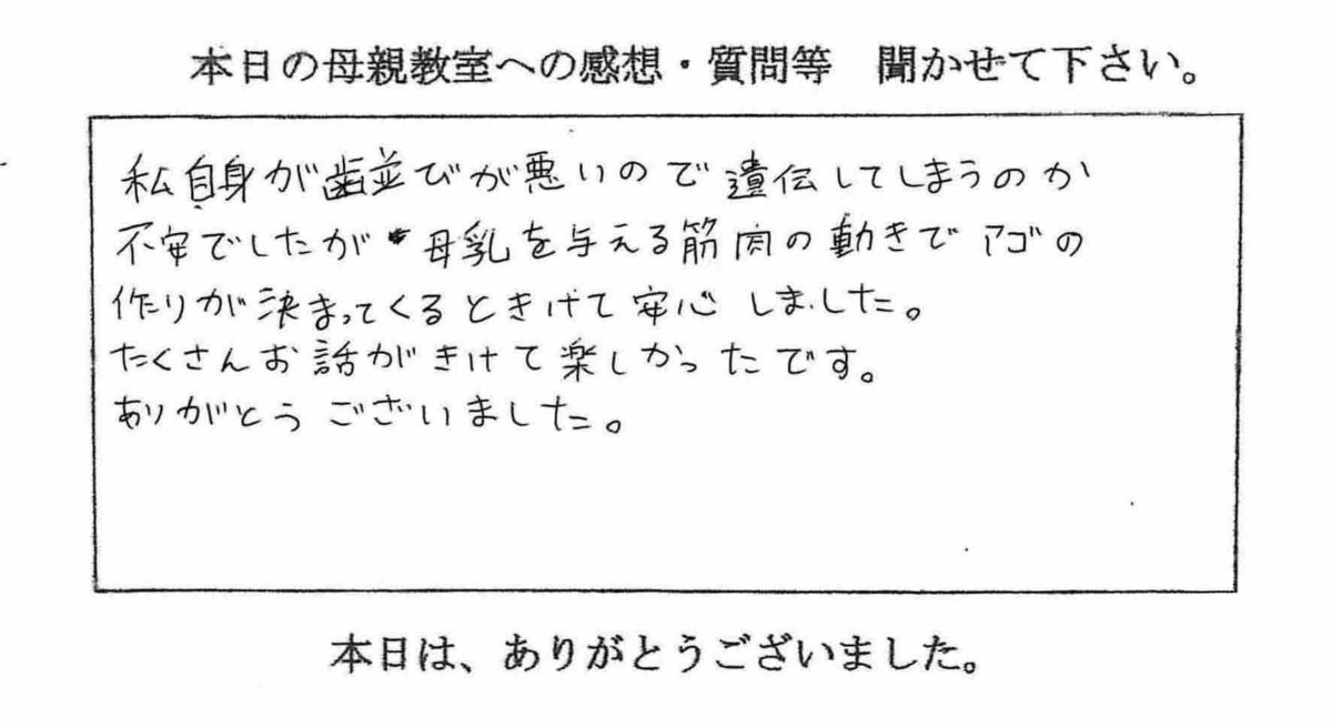 私自身歯並びが悪く、大人になって気にする事も多く、子供にはキレイな歯並びになって欲しいと思い相談させて頂きました。